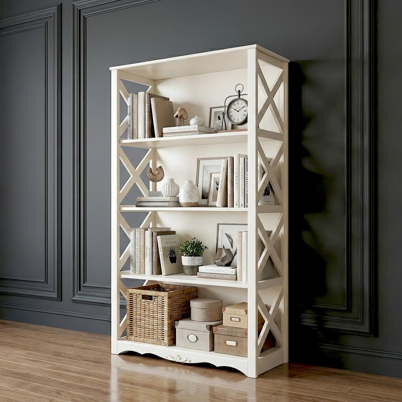 Якщо вам потрібно розділити кімнату на зони або ви хочете зробити простір функціональним, замовляйте етажерку «Прованс». Купити широкий стелаж можна окремо або комплектом з іншими предметами цієї ж серії.