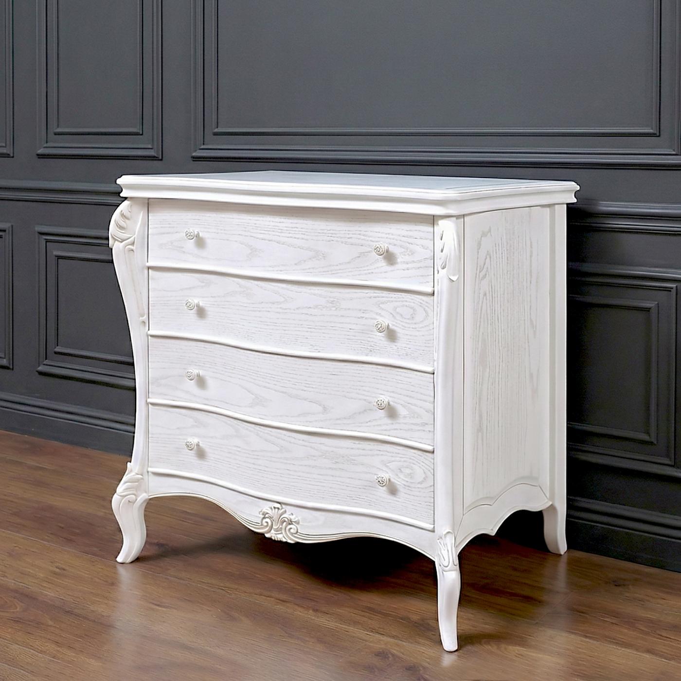 Великий і місткий комод «Валенсія» — це ідеальне рішення для зберігання постільної білизни. Виріб також чудово підходить як альтернатива шафі в маленьку дитячу кімнату. У чотирьох широких шухлядах легко помістяться необхідні дитячі речі.