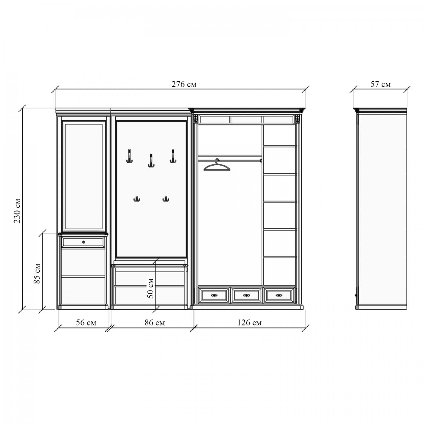 | Шкаф 3 двери 3 ящика | 126см | 57см | 230см | 61935 |