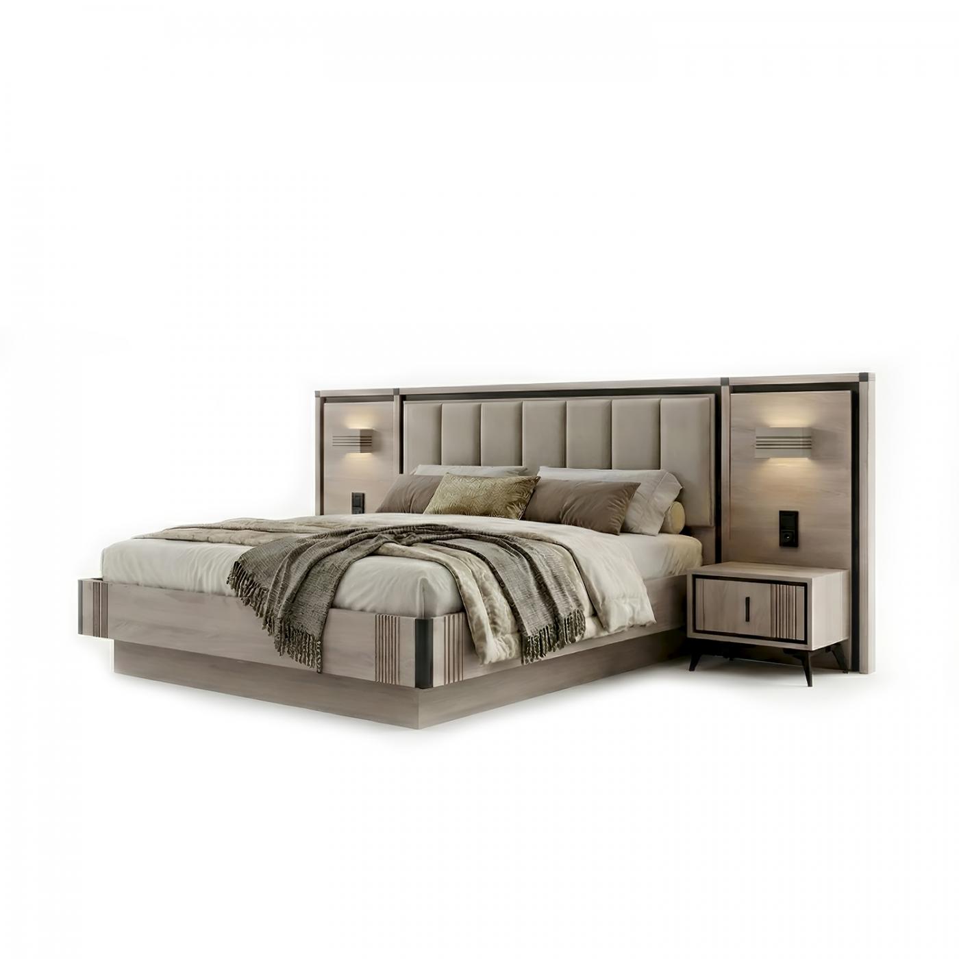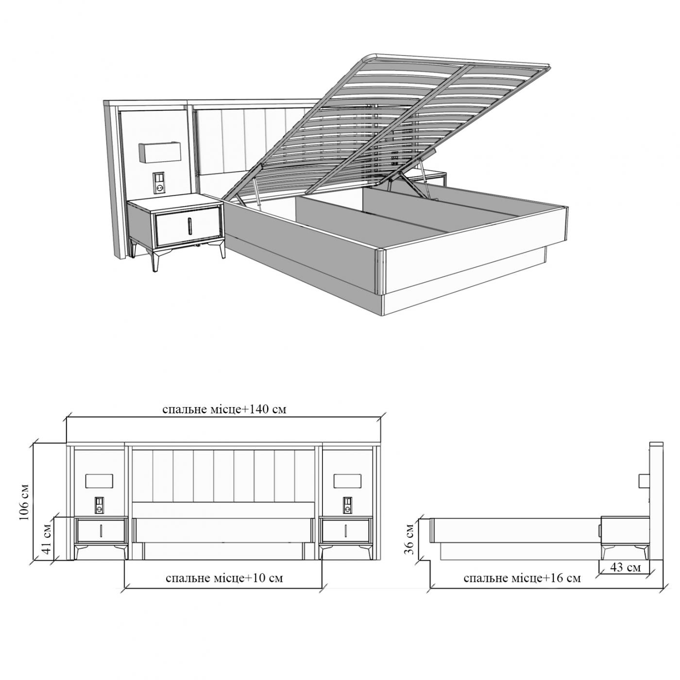 РАЗПРОДАЖА! Вналичии: кровать ГЕОМЕТРИЯ, спальное место 200х200 см, ниша для белья, подемный механизм, 2 светильника, 2 прикроватные тумбы.
