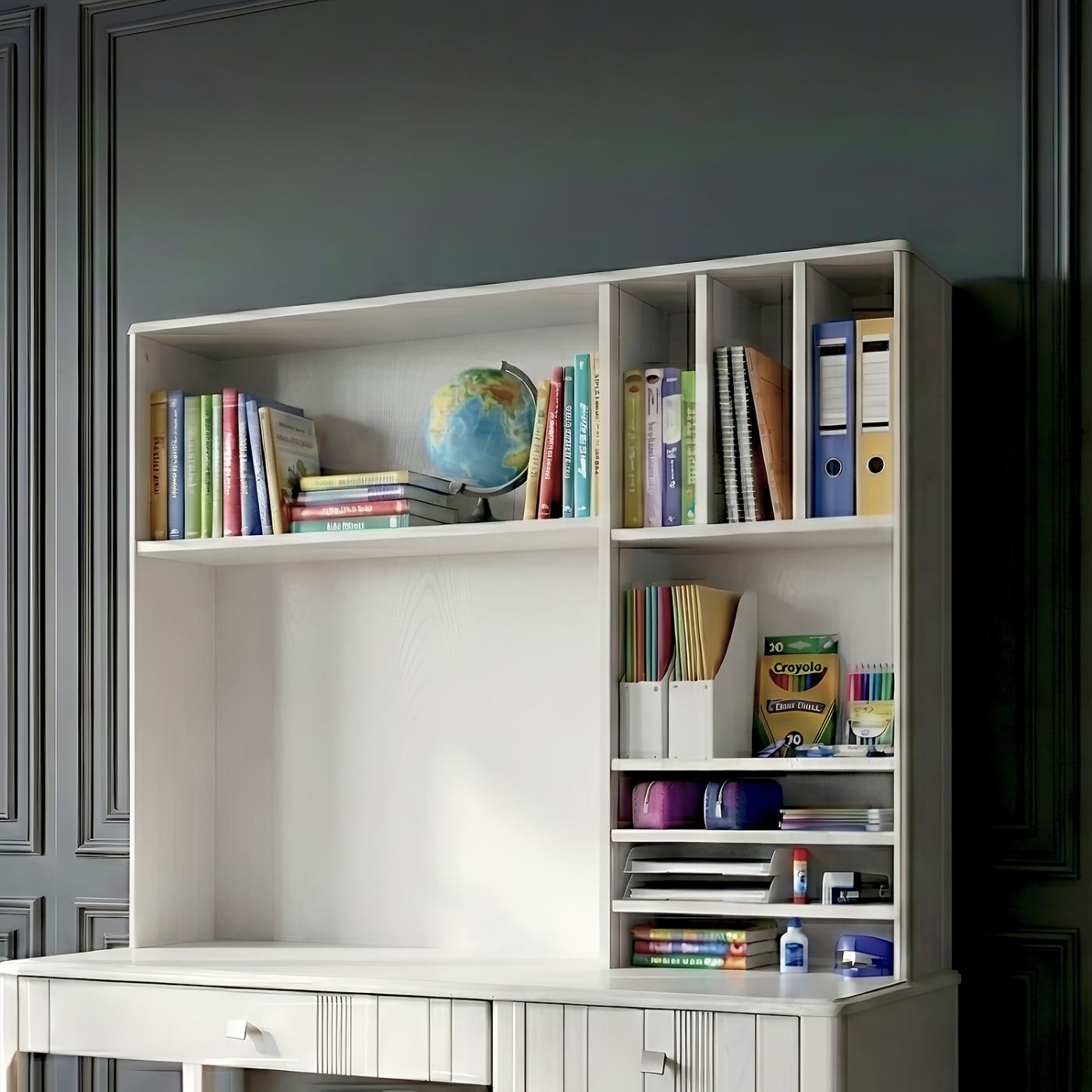 Надбудова до письмового столу особливо доречна в компактних кабінетах чи дитячих кімнатах, де складно розмістити книжкову шафу або стелаж.