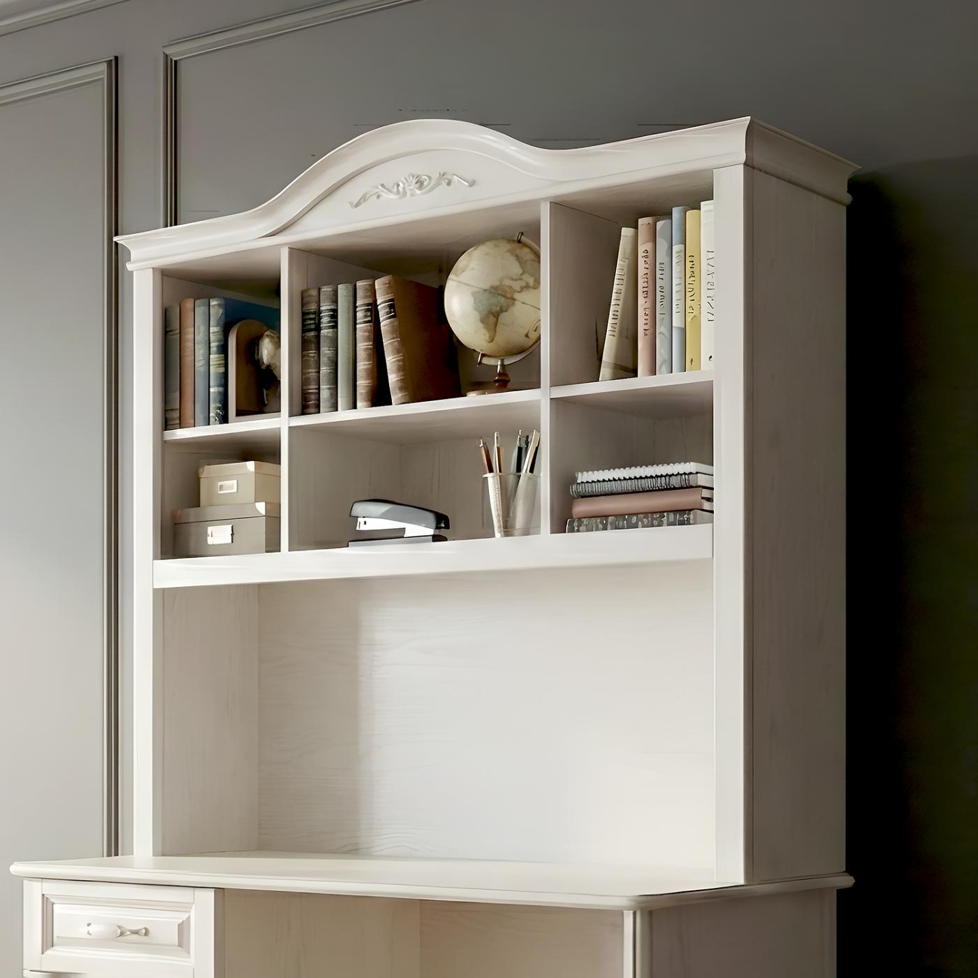 Якщо ви плануєте придбати письмовий стіл «Прованс», його функціональність можна розширити за допомогою спеціальної надбудови. Надбудова на стіл має ті самі стилістичні атрибути, тому комплект матиме гармонійний і завершений вигляд. Стіл із надбудовою зроблять роботу та навчання ще комфортнішими.