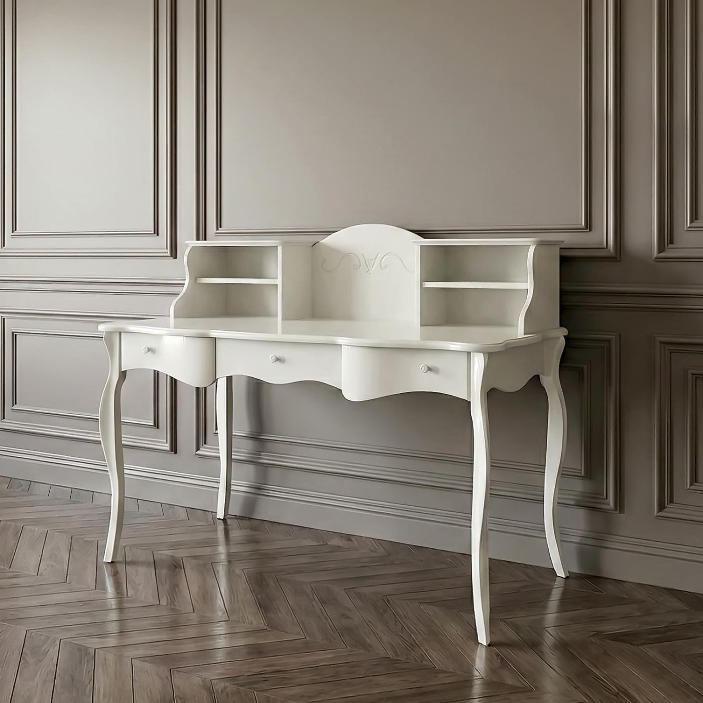 Функціональний і місткий, зручний і естетичний — усі ці характеристики ідеально підходять до письмового столу «Корсика-Слім» від української студії авторських меблів «Еклектика». Стіл досить невеликий, тому його можна придбати для компактної дитячої кімнати. Якщо потрібно збільшити місткість, можна докупити надбудову, яка встановлюється на стільницю й дозволяє зручно зберігати речі: усі зошити, підручники та інші матеріали завжди лежатимуть на своїх місцях.