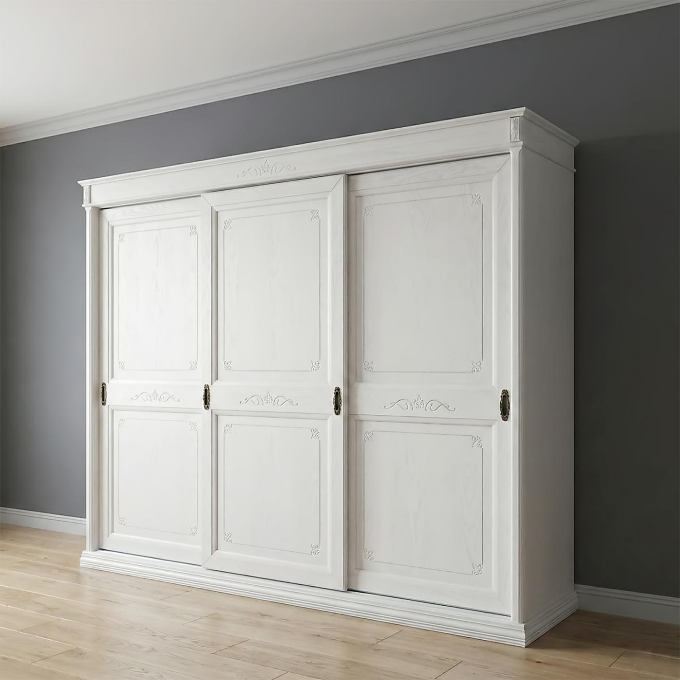 Дерев’яна шафа-купе «Тоскана» матиме гармонійний вигляд у просторій спальні, оскільки має досить габаритні розміри. Із цієї колекції можна підібрати й інші меблі в комплект до шафи.