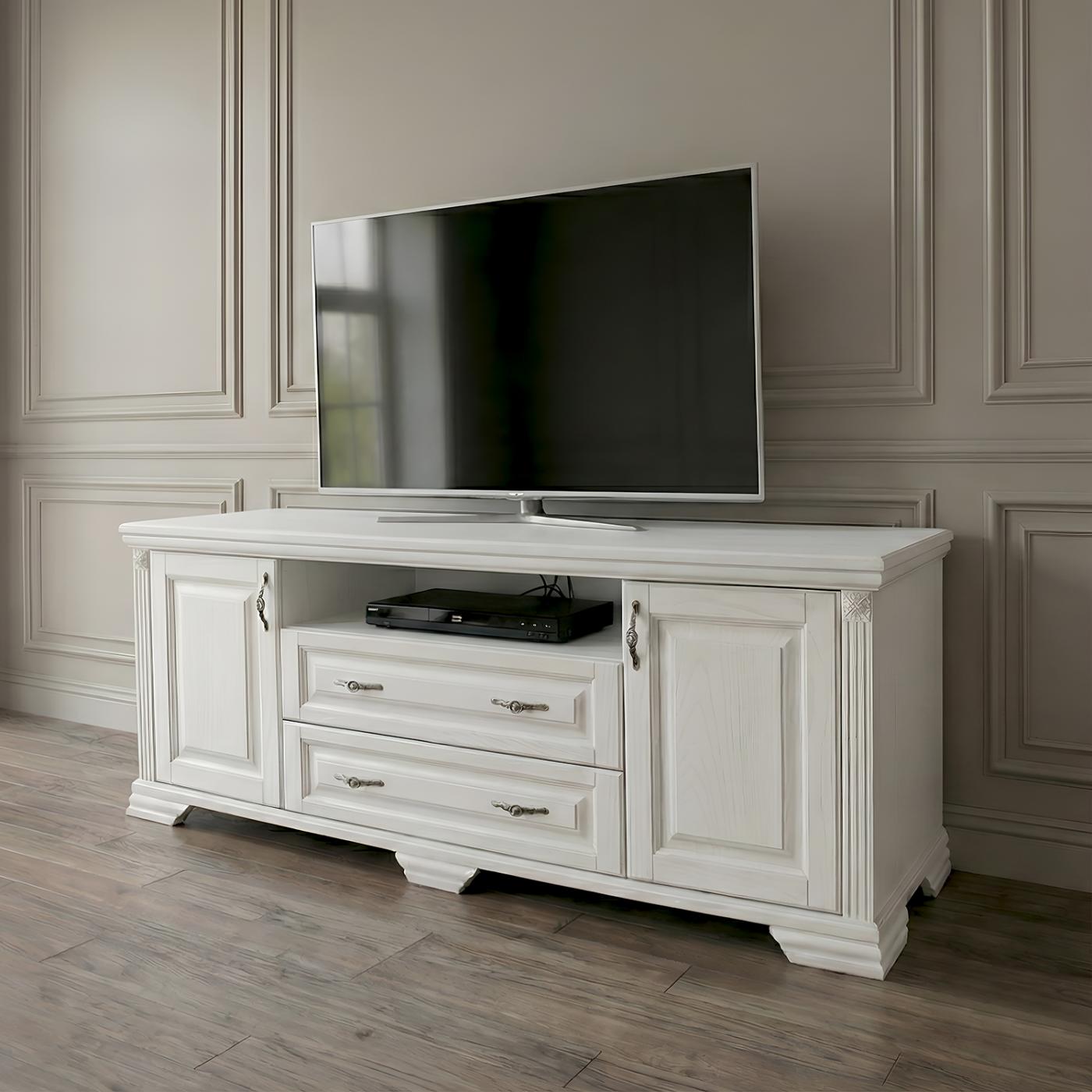 Для класичного інтер’єру вітальні добре пасуватиме тумба під телевізор «Магія», що також виконана в класичному стилі. Масивна модель стане прикрасою зали й служитиме роками, адже зроблена з натурального дерева.