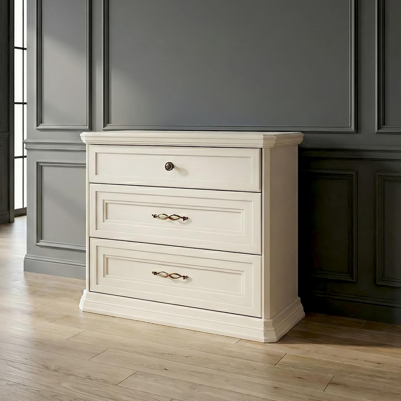 Прикроватная тумба «Сиена» компонуется тремя ящиками, нижние два из них более габаритные. Этот предмет достаточно массивный, может играть роль компактного комода.