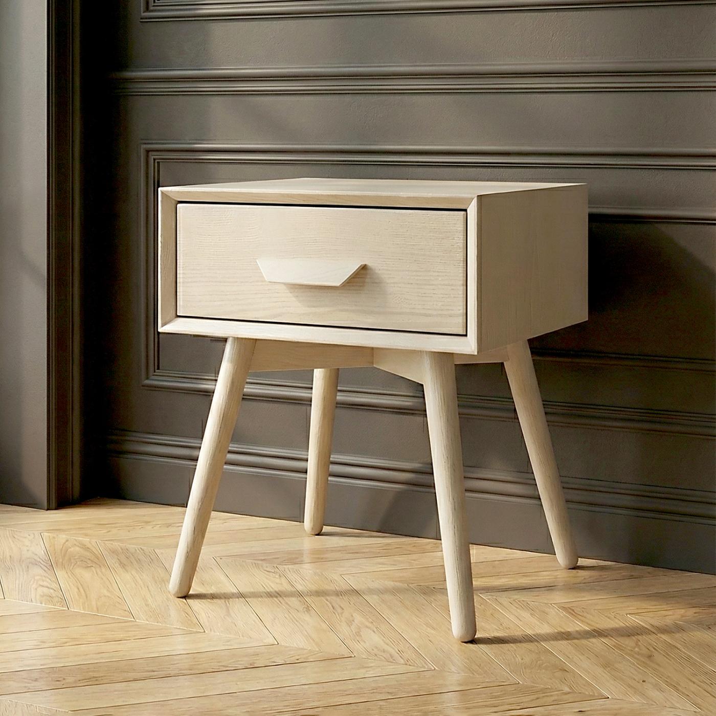 Приліжкова тумба виконана з якісного натурального матеріалу — масиву ясена, тому служитиме довгий час без втрати привабливого вигляду. Цікава за формою ручка також зроблена з дерева.