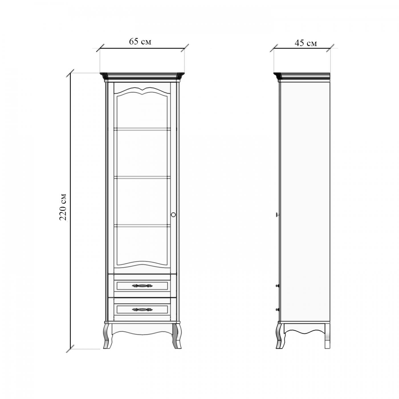 Деревянная витрина имеет мощные и надежные ножки, что обеспечивает устойчивость всей конструкции. Для изготовления используются безопасные и экологически чистые материалы, которые не могут навредить здоровью. Изысканый вид мебели формирует эстетический вкус ребенка. Вырез в дверях выполнен в форме открытой книги, барочные ножки с царгами имеют изысканную форму, а верх украшен карнизом.